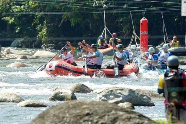 今回の選手権は、世界21カ国・65チームのチームがレースに参加。4人乗りのゴムボートで競う「短距離タイムレース(スプリント)」「2カ国同時スタートで設置されたブイを取り合うトーナメント戦(H2H)」「固定ゲートを通過しタイムを競う(スラローム)」「激流を下った長距離タイムレース(ダウンリバー)」の4種目の総合得点で順位が決まる。