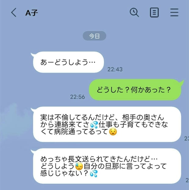 【自業自得】友人「不倫相手の奥さんから連絡が…」自分が悪いんでしょと思うのは私だけ?