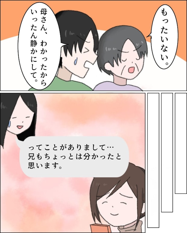「もったいない」と頑なに言う母、「母さん、わかったからいったん静かにして」と兄は大慌てでした。