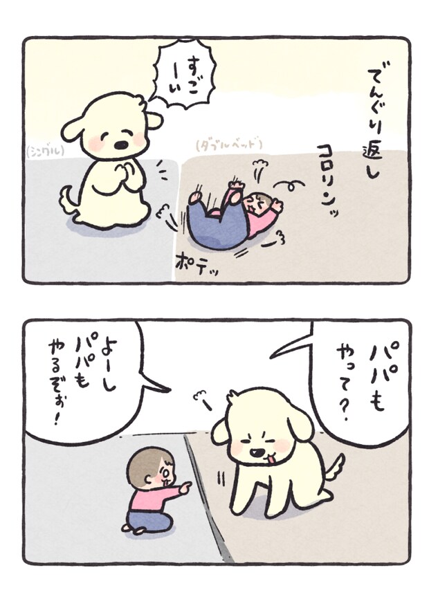 コイチャンとパパとでんぐり返しの練習
