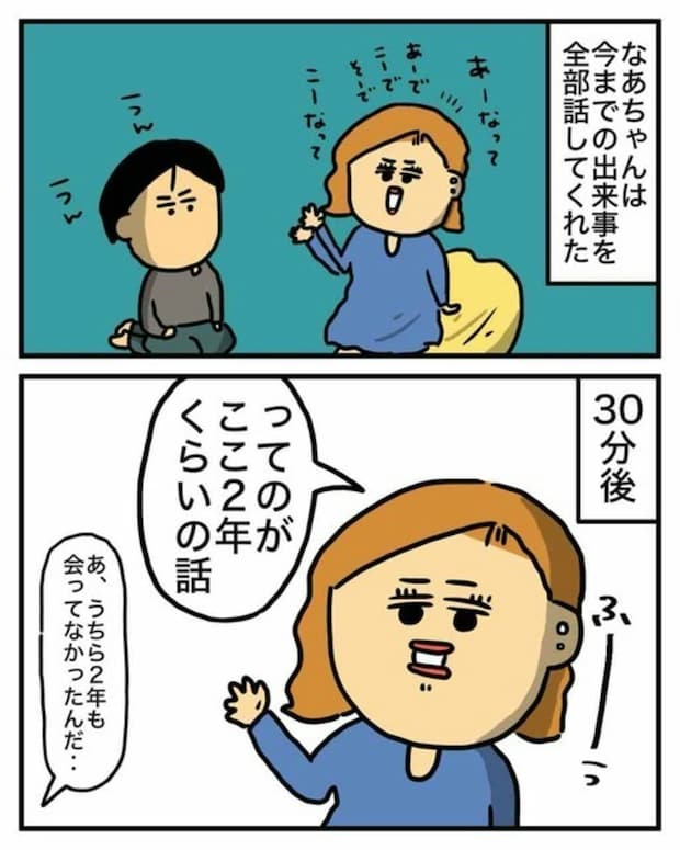 エクボさんの幼馴染のなぁちゃんは、子どもをひとりで育てていく決意をした、今までのでき事をすべて話してくれました。浮気されて別れ、復縁したもののまた別れ、妊娠したことを報告してもおろして欲しいと言われて、でも産みたいと思ったというなぁちゃん。