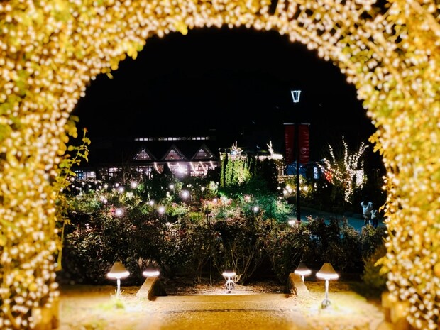 光のトンネルがいくつもあり、なかでも入口前のローズトンネルは必見!