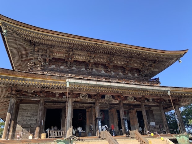 文化財も多いです。中心となるのが役小角(えんのおづぬ)が開創したと伝わる金峯山寺(きんぷせんじ)です。蔵王堂(ざおうどう)と呼ばれる本堂は、高さ34メートルもある木造建築で、吉野山のシンボルとなっています。