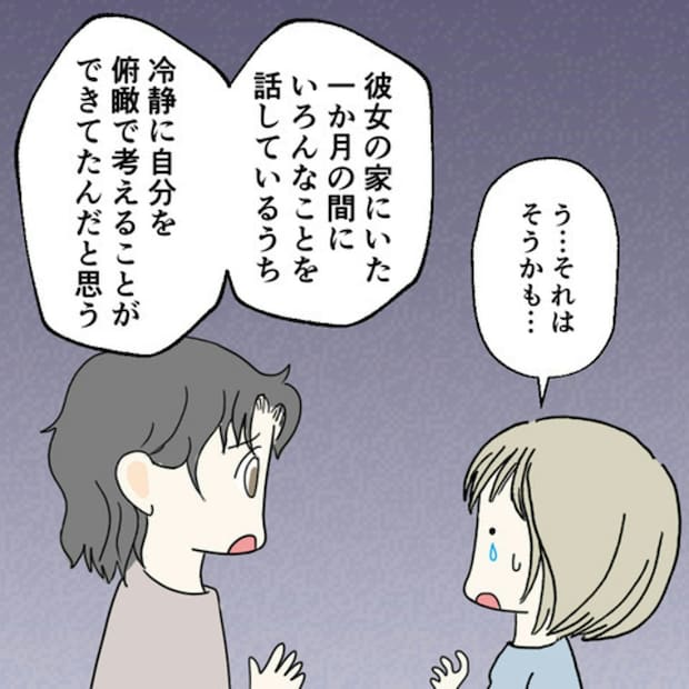 E原さんは、病院へ行こうと思ったのは元カノに言われたわけではないと言いました。カレは、元カノと一緒に1か月過ごした中で、昔と変わっていない自分に気づいてしまいました。そんなカレの心境の変化を聞いたS葉さんは…。