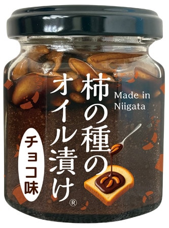 「柿の種のオイル漬けシリーズ」など数々の新商品を開発してきた阿部幸製菓が、「ご飯にのせる」から「パンにのせる」という新たなコンセプトとして企画した商品が「パンにのせる柿の種のオイル漬け チョコ味」。