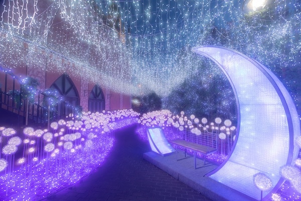 光に包まれるガーデンや「月」をモチーフにしたフォトスポットは「冬のフォトウェディング・前撮りのロケーション」としても人気で、毎年カップルやファミリーでにぎわう。