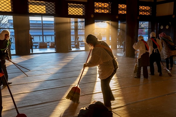 500年以上続く伝統行事、西本願寺の「御煤払」で、国宝阿弥陀堂・御影堂のほこりを払い、心新たに新年を迎えてみては。