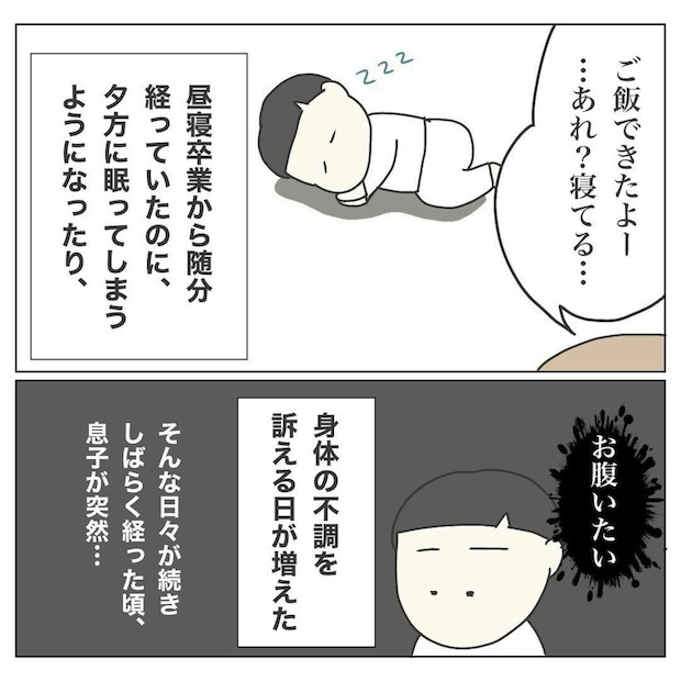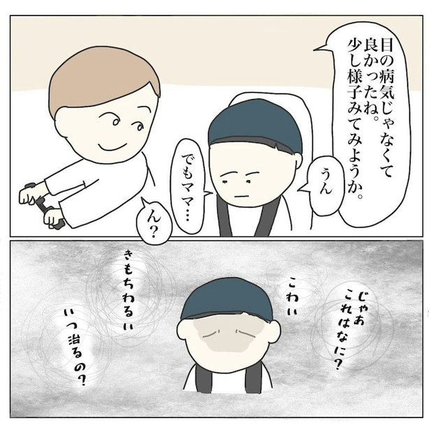 得体のしれない症状に、長男もぬーこさんも不安を抱きます。「こわい」「きもちわるい」という、ネガティブな気持ちでいっぱいに。