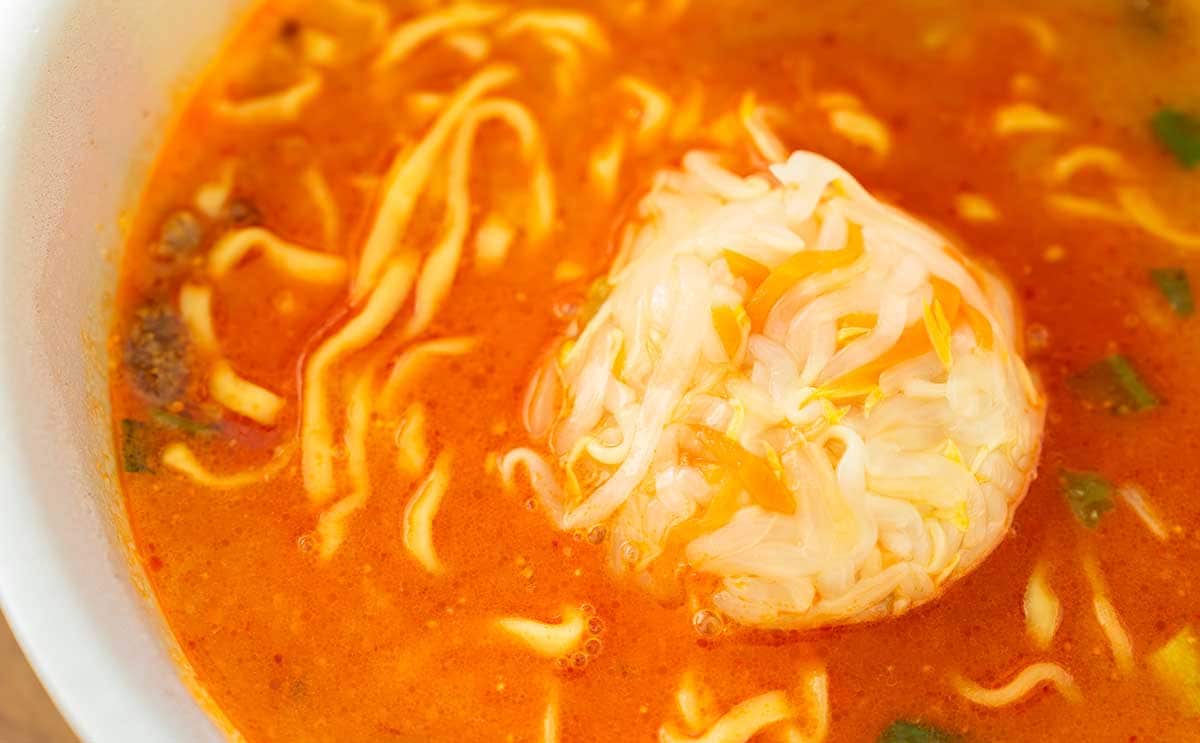 「マルちゃん正麺 カップ もやし辛味噌」は、このもやしとにんじんの具材感がたまらないですよね。
