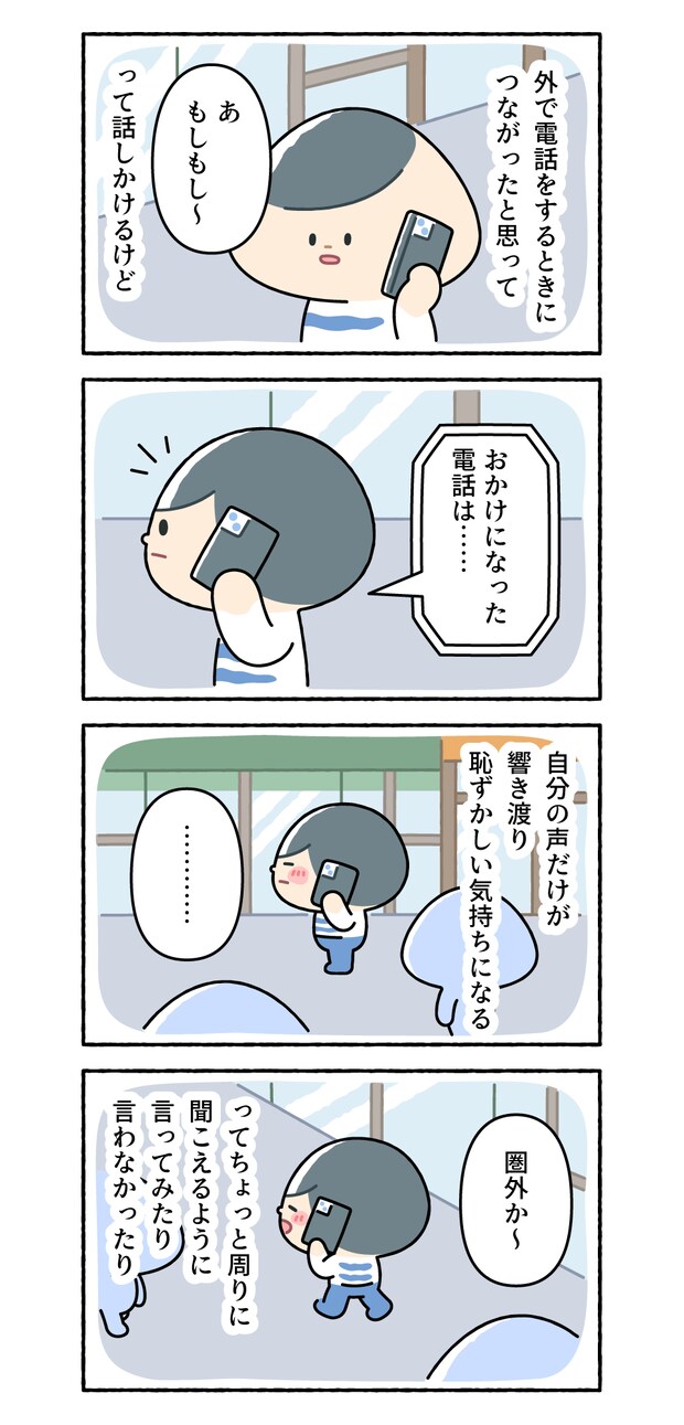 自分しかいなければいいのですが、公衆の面前だと何だか「もしもし」だけ言って電話を切るのが恥ずかしくて、言い訳しちゃうんです。