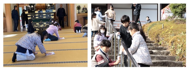 特に圓光大師堂では、普段は触れることのできない大鏧(だいきん)や木魚を鳴らす貴重な体験もさせていただき、子どもたちは皆、楽しそうに活動に取り組みました。