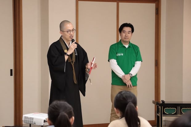 イベントの最後には質疑応答の時間が設けられ、「子どもでもお坊さんになれますか?」「女性もお坊さんになれますか?」といった素朴で率直な質問が次々に飛び出しました。また、ニチバンの倉智氏に向けては「ケアリーヴじゃないとダメなんですか?」という、子どもならではのストレートな質問が飛び出す一幕も。終始、和やかな空気で包まれ、学びだけでなく楽しさも共有できる時間となりました。