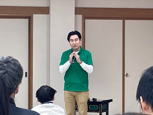 まず、増上寺 アドバイザー 僧侶(法律家)の堀江 利昌(ほりえ りしょう)さんが登壇し、心に響く説法が行われました。堀江さんは、「手当」という言葉の原点が、痛いところに手を当てる行為から始まったことを説明。手を当てることで、単に痛みが和らぐだけでなく、「心が温まる」という精神的なつながりが生まれると語りました。そして、「人は一人では生きられない。手当をすることは、私たちがみんなでつながっていることに気づくきっかけになる」と、子どもたちにも伝わる優しい言葉で、想いやりの大切さを説きました。