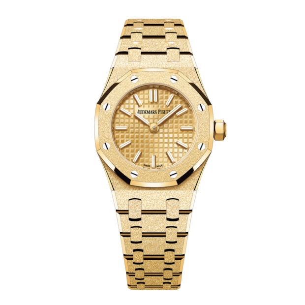 「マットなゴールドが◎」時計〈ロイヤル オーク ミニ フロステッド ゴールド クォーツ〉[K18YG、φ23mm]¥5,225,000(オーデマ ピゲ/オーデマ ピゲ ジャパン)