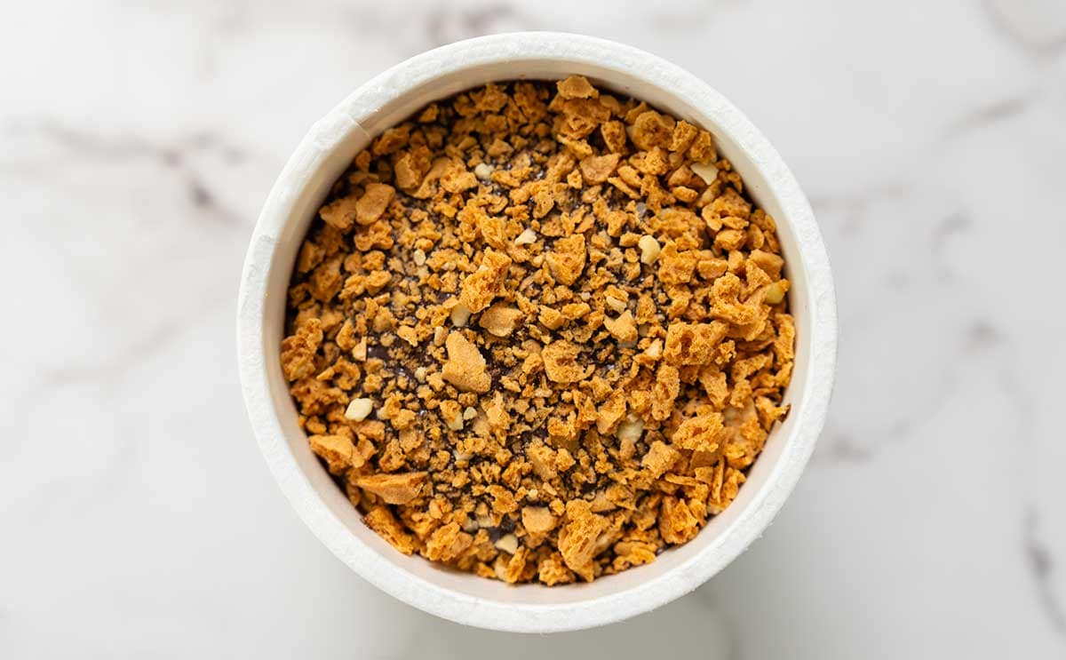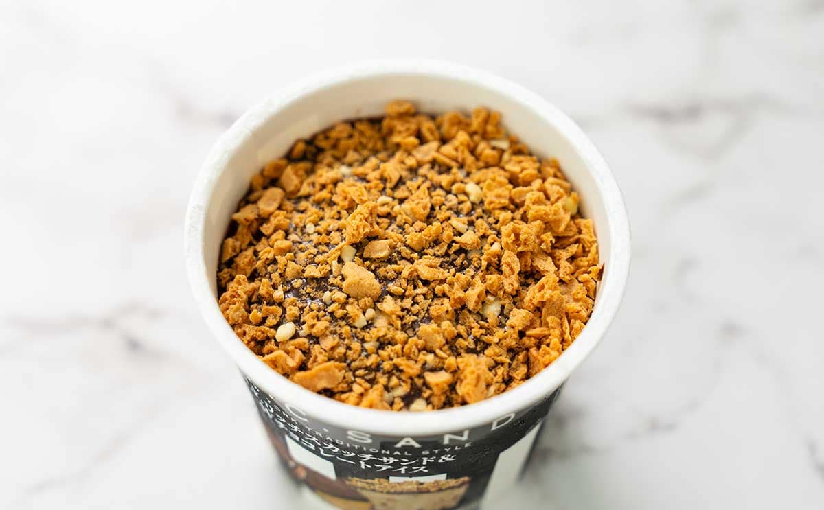 アイスの表面には、アーモンドクランチが敷き詰められています。