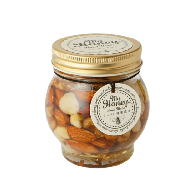 こちらは筆者が自宅用にも何度もリピート買いしているナッツのはちみつ漬けです。朝食にプレーンヨーグルトにフルーツとグラノーラかナッツのはちみつ漬けを入れていただくようにしているので、ストックが欠かせません!