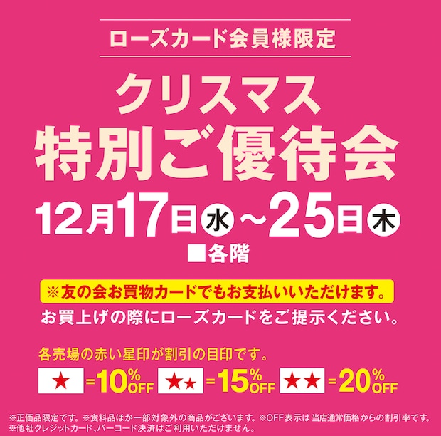 また、この期間中、いよてつ高島屋ではローズカード会員様向けの「クリスマス特別ご優待」が両店で利用可能です。
