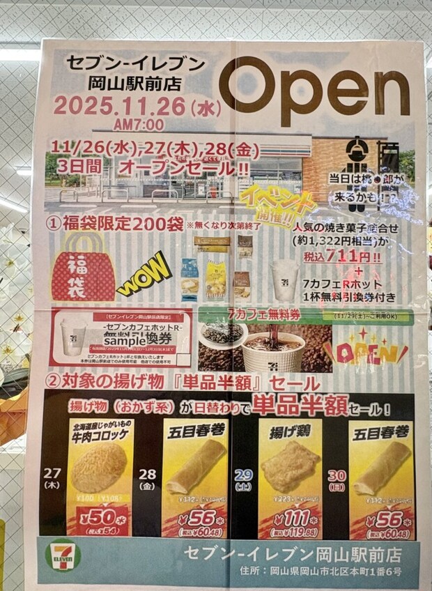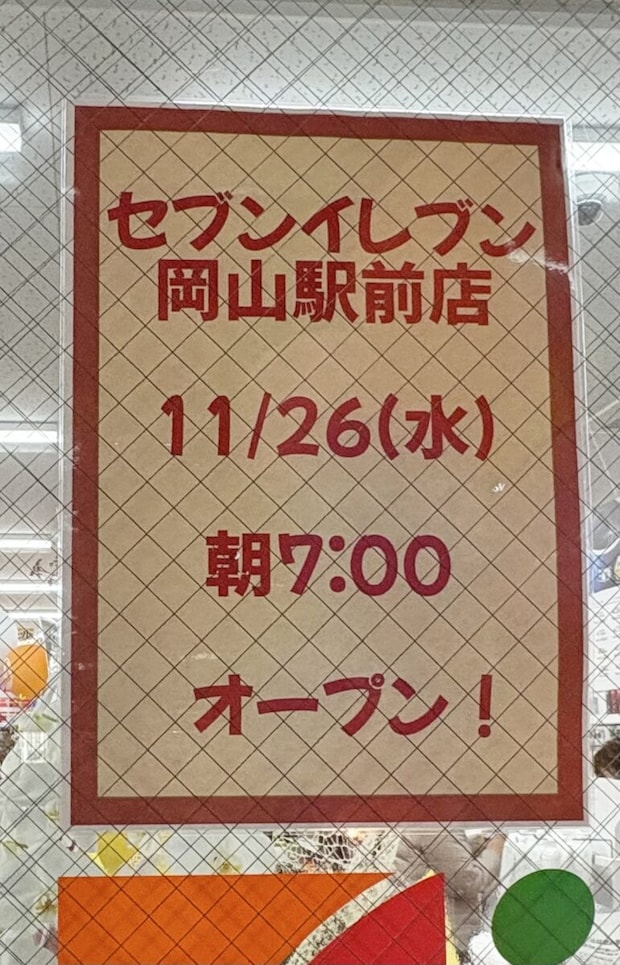 岡山駅を降りて、街を目指した時の正面にあったマックと言うか、割と印象に残るであろう場所にできたセブン。