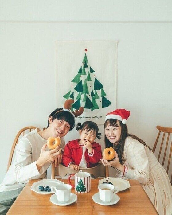 ツリーやシーズングリーティングカード、マグカップ、タペストリーなどの小物を使うと、よりクリスマスを演出できます。赤などのクリスマスカラーの洋服を着て撮影するのもオススメです。