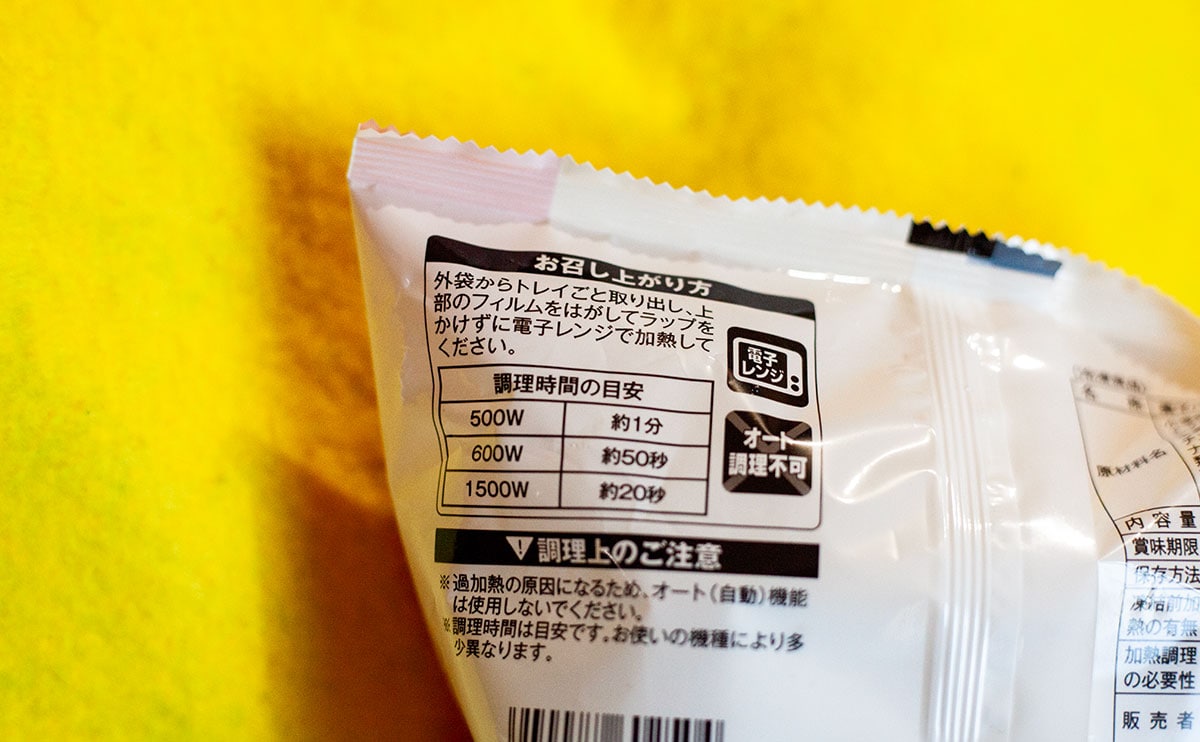 外袋から取り出して、フィルムをはずし、そのまま電子レンジへぶち込めばOK。500Wの場合、約1分!