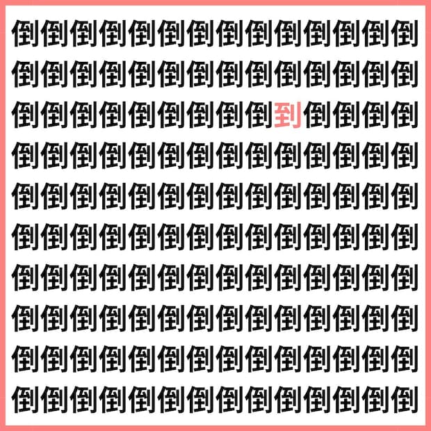 たくさんの「倒」の中に、1文字だけ違う漢字が混ざっています。