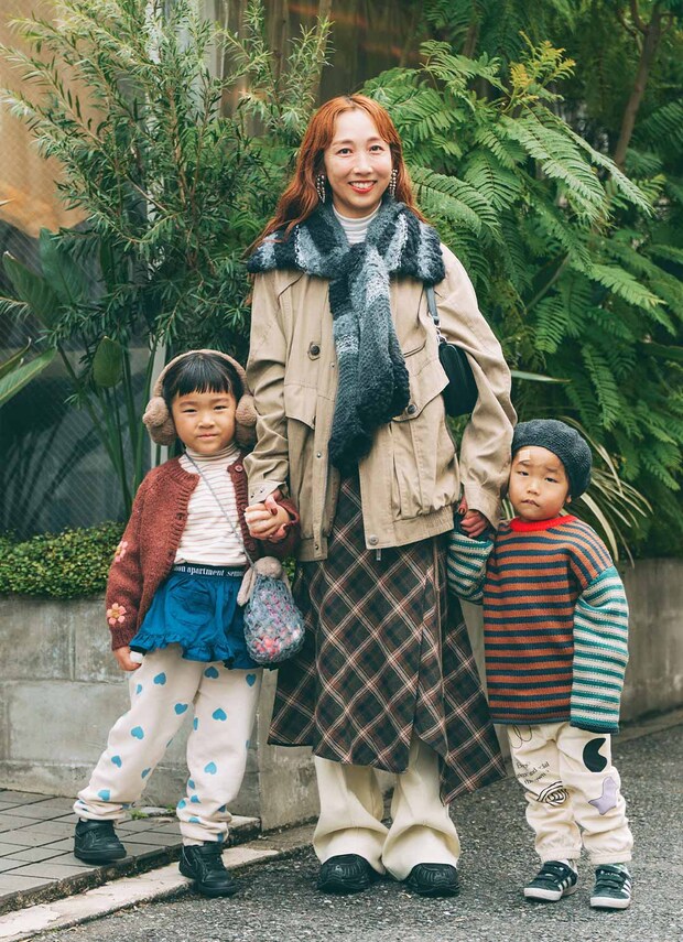 ニットをそれぞれのムードに落とし込んだ家族コーデは、冬本番コーデのヒントにしたい! ママはレイヤードスタイルを楽しみつつ、Aラインのスカートですっきりと。キッズは『セモン アパートメント』のアイテムで個性を出して、キュートな冬小物を取り入れたのがグッド♪