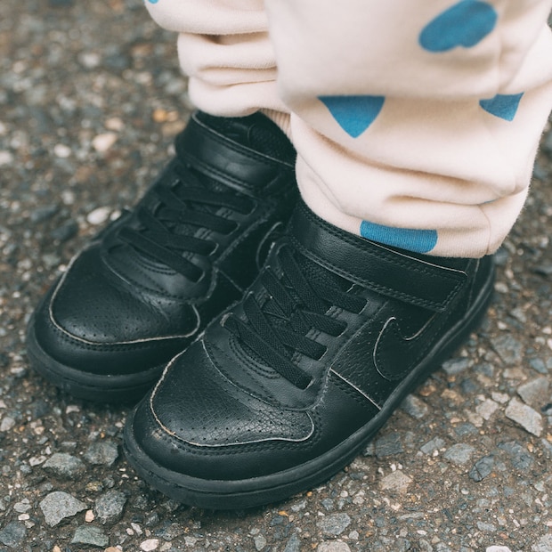 『ナイキ』のスニーカーでストリートテイストに味付けした足元。ママとブランドシェアしたのが、親子コーデが楽しくなる秘訣。