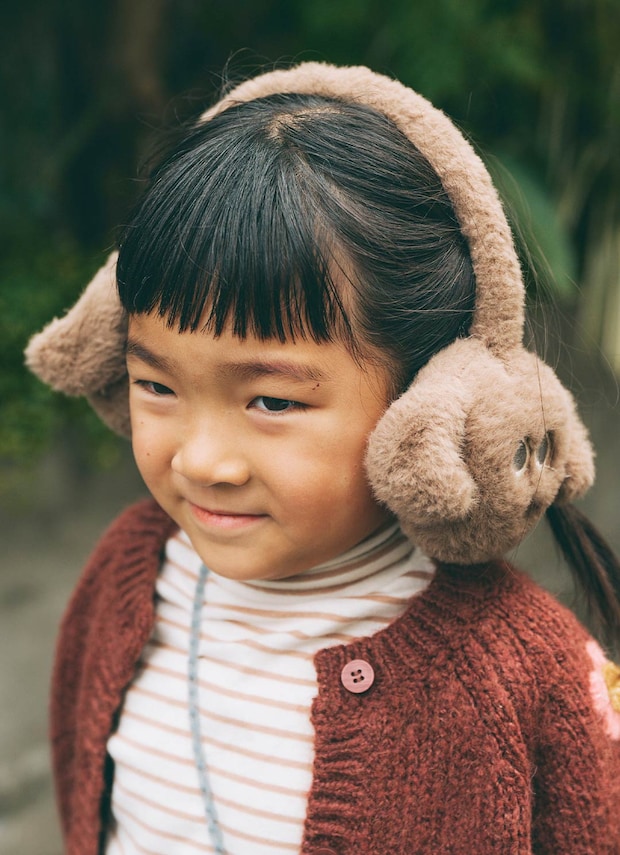 『スリーコインズ』でゲットしたイヤーマフラーが可愛い! キュートなフェイスに、子どものテンションアップ♡