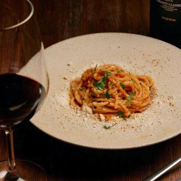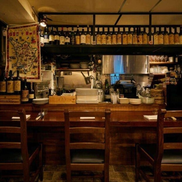 10席と個室のみの小さな空間で味わう、トスカーナ料理と200種以上のワイン。キッチンと向き合う3席のカウンターは、音や香りまで楽しめる特等席。コースはワインが進むミニ前菜4皿に、旬を映したミニパスタ1皿の全5皿構成。必要以上に構えなくていい量感が、おひとりさまにちょうどいい。アラカルトで肉料理や〆を足して、自分好みに組み立てられる自由さも魅力。温かなサービスに包まれて、自然と気持ちがほどけていきます。