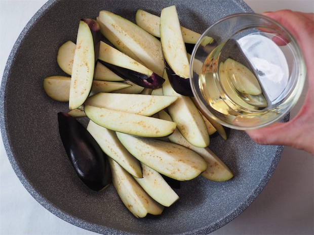 ①なすに油を絡める