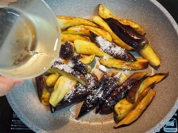 なすは空洞が多いから際限なく油を吸うのだそう。温まってサラサラになった油はさらに吸い込みやすいため、この方法ならそんなに吸わないで済むんですって!なるほど、不必要に油を使うのは避けたいですもんね。