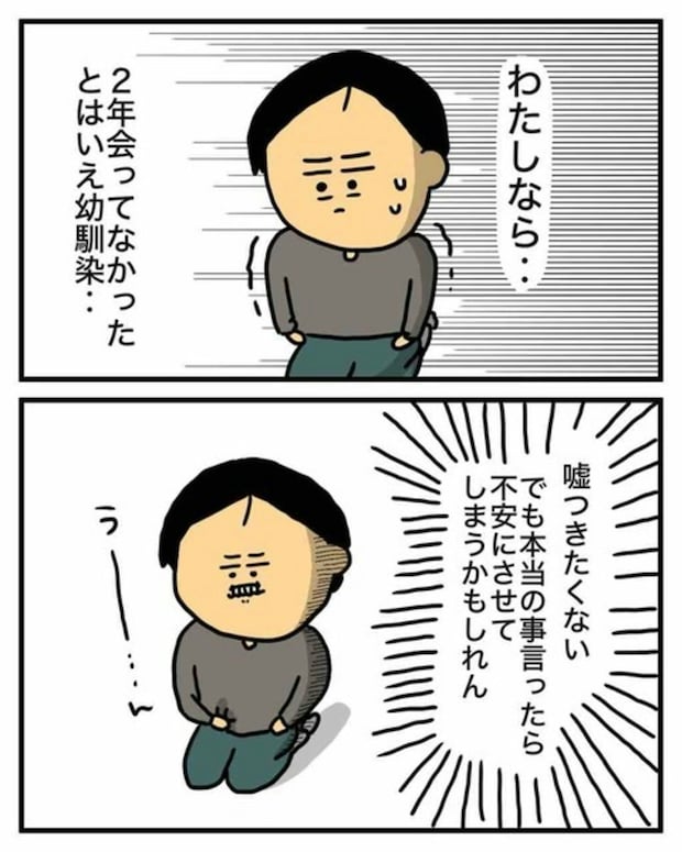 幼馴染には嘘をつきたくない、と悩むエクボさん。思い悩むエクボさんをなぁちゃんはじっと静かに待ってくれます。