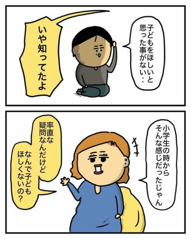 どう思われるか不安になりながら言ったことでしたが、なぁちゃんはそのことを知っていました。そのうえで「なんで子ども欲しくないの?」と率直な疑問をエクボさんに投げかけます。