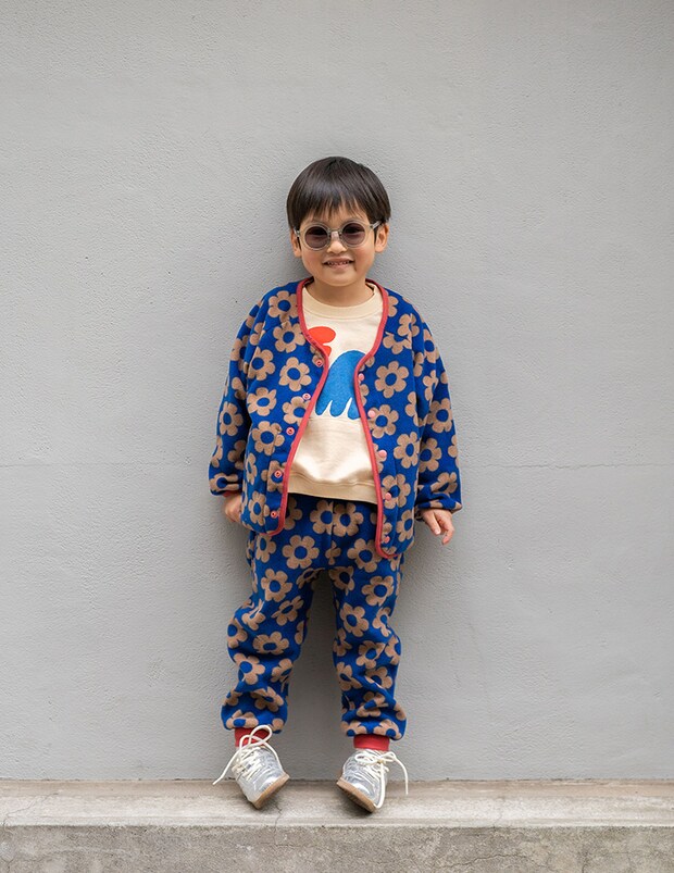 mama’s voiceやっぱりこのセットアップですね! 軽くて暖かそうですし、男の子でもおしゃれに着れる花柄は貴重。着回し力抜群なので、上下で持っておきたいです!