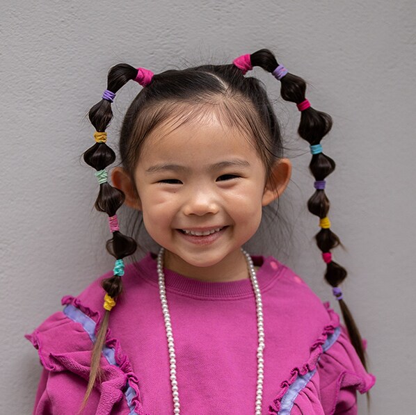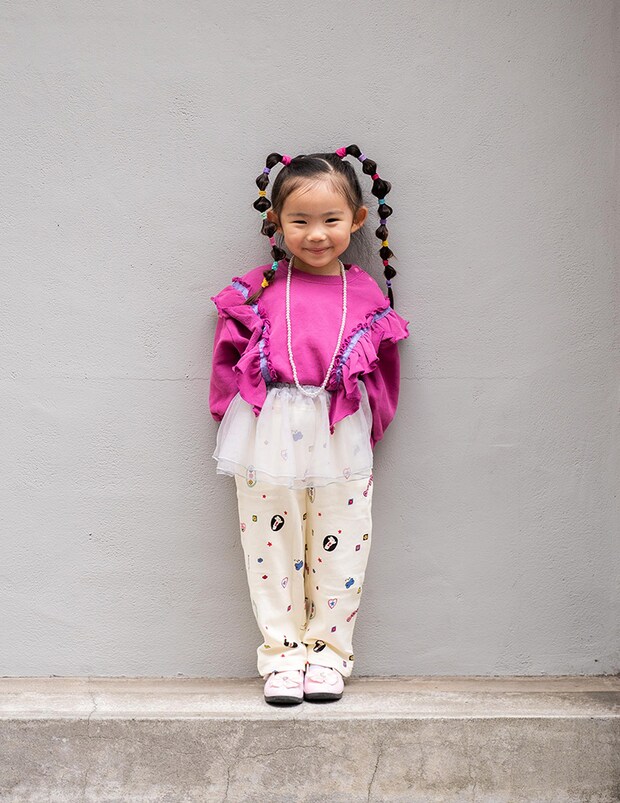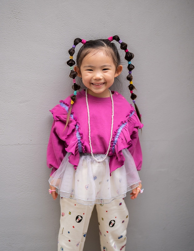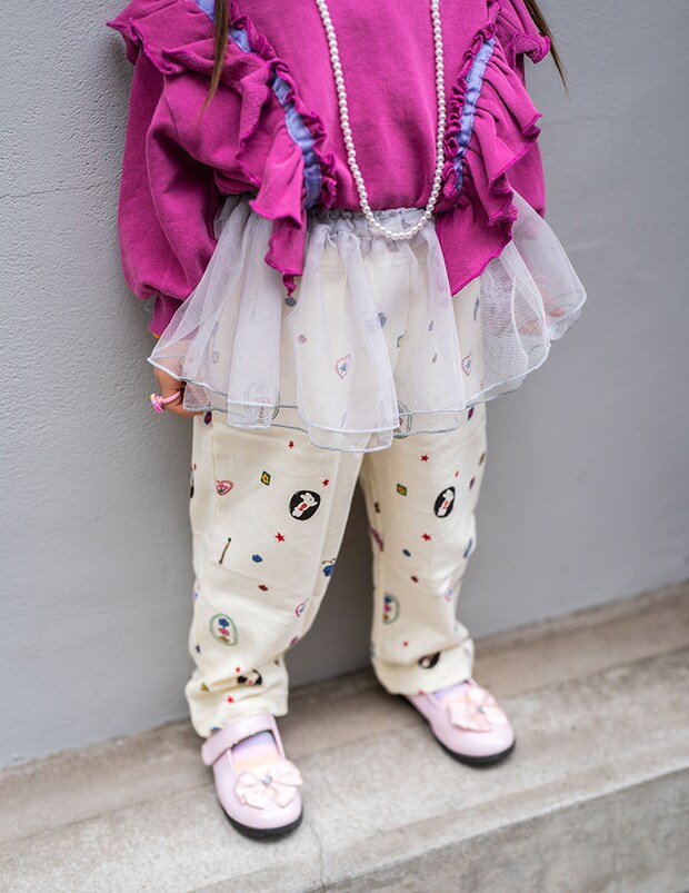 ピンクのトップスにチュールスカートを合わせた、プリンセス好きなたいりちゃんならではのスタイリング♡ 華やかなコーデもゆとりのあるシルエットだから、動きやすさ抜群!