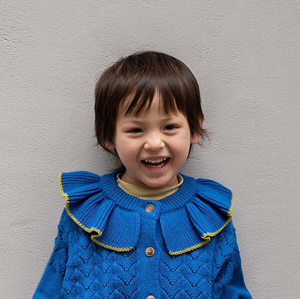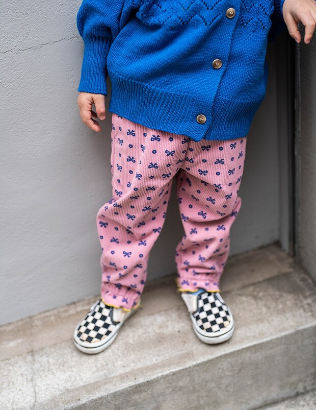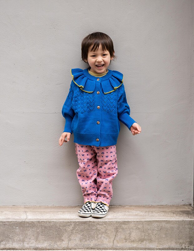 kids’s voiceお気に入りはカーディガンの襟とズボンのリボン!