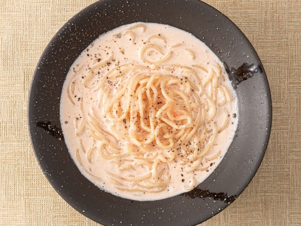 生クリームを使用した濃厚なたらこクリームのスパゲティ。特製ソースがもちもちの生パスタによく絡むという。卓上の赤山椒をかけることで、キリっとした風味が加わり、味の変化も楽しめるとしている。