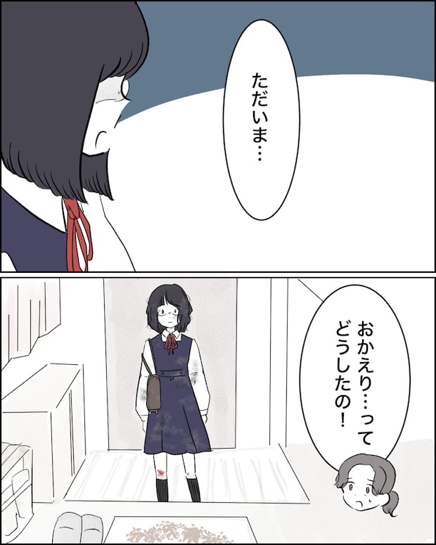 ![中2娘がイジメられていると気づいた母。転んだと言って擦りむけた膝と教科書の落書き。優等生の裏の顔[1]|ママ広場マンガ](https://assets.mama.aacdn.jp/contents/27/2025/12/1765938712586_zf8pgnufe8j.jpg?maxwidth=620)