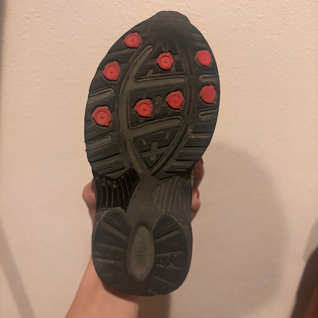 靴底をひっくり返すとこんな感じで、しっかりと凹凸のあるアウトソールでグリップ力が本当に強いです!雨上がりだったり、ツルッとした床でも安心^_^元気すぎる我が家の兄弟にはありがたい…♡