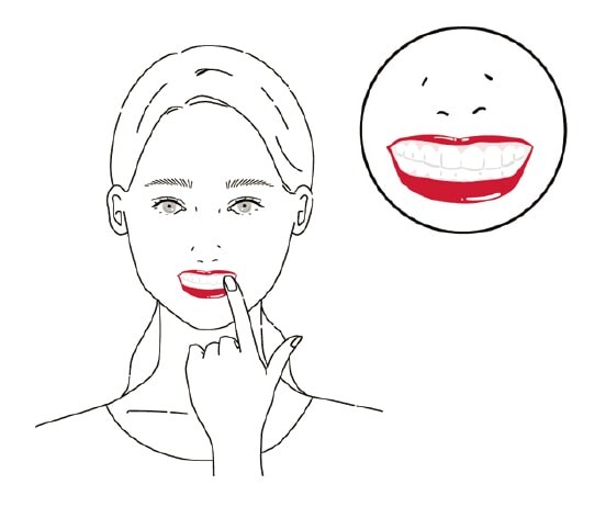 上下の前歯の、歯と歯茎の境目を人さし指のハラで軽く押す(1カ所につき5~10秒)。▶︎目やひざ、お尻、肝臓、腎臓などのツボが集中している前歯にアプローチ。洗浄後のキレイな手で行って。