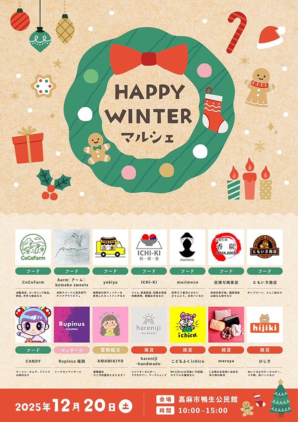 The post 【嘉麻】12月20日(土)、鴨生町公民館にて「HAPPY WINTERマルシェ」が開催されます! first appeared on 筑豊情報マガジンWING.