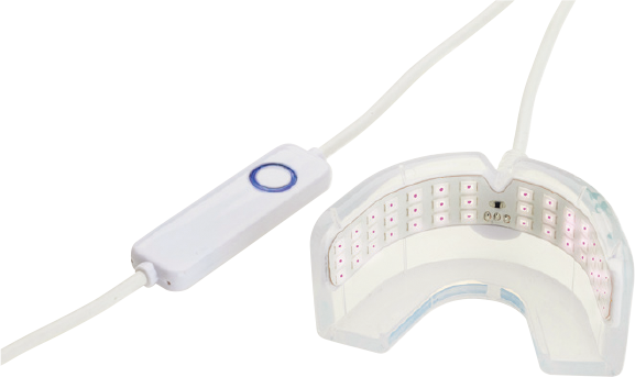 骨のリモデリングを促すといわれるマウスピース形の光加速矯正装置。ワイヤー矯正にもマウスピース矯正にも対応している。PBMオルソヒーリング ¥88,000(新橋歯科医科診療所)