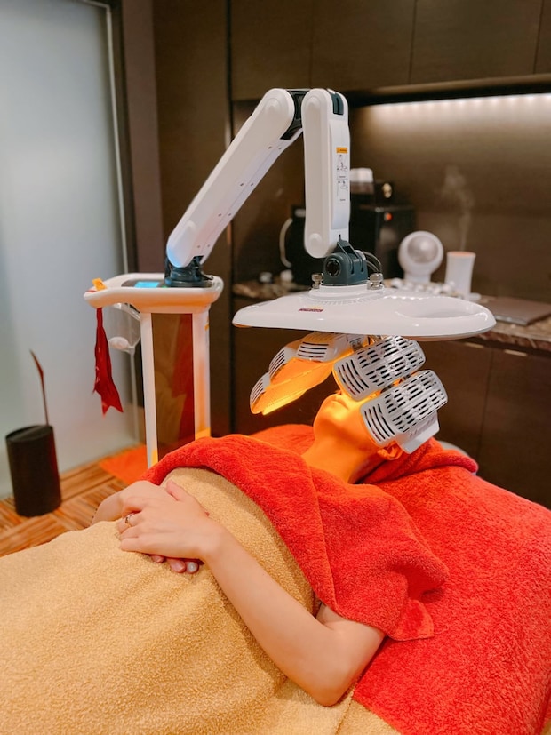 リュウズクリニカルスパでは、ハイドラフェイシャルの後にヒーライトという医療用新世代LEDライトを照射します。ヒーライトは肌の細胞を再構築させる、内面からのアンチエイジングマシーン。コラーゲン再生や肌のターンオーバー促進、創傷治癒促進などが行えるため、フェイスリフトなど術後のダウンタイムにも使われるものですが、それをハイドラフェイシャル後にあててもらえる! ピーリング後は多少の赤みが出ることもあるので、肌を鎮静させて肌の再構築の促進が期待できるとのこと。近未来な光を浴びながらキレイになれ~と心の中で唱えれば、効果も2割増し、3割増しになりそう。