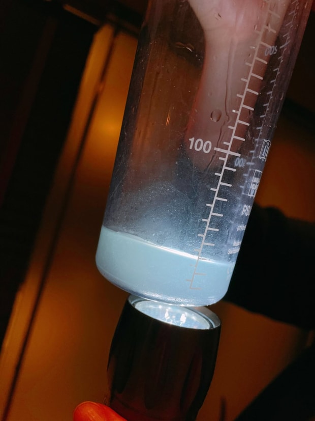 お見苦しくて恐縮なのですが、水の中にユラユラ浮いている白い物体が今回吸引した汚れたち。毎日角質ケアをしていることもあり「汚れ、少ないですね」とおっしゃっていただきましたが……それでもなかなかな量が。