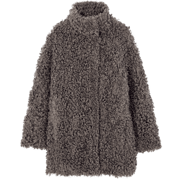 「毛足が長く、リュクスな印象のカーリーファーコート。とにかく軽いところと、お尻まですっぽり隠れる丈感がポイントです。カジュアル派もフェミニン派もコーデしやすい一枚」IÉNA プレス・小林美紀さん