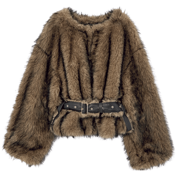 「華やかなミックスファーを使用し、存在感のあるキャッチーなファーコートを作りました。レザーとファー、リバーシブルのベルト付きで、気分に合った幅広い着こなしが楽しめますよ」styling/ チーフプレス・八木沼志乃さん