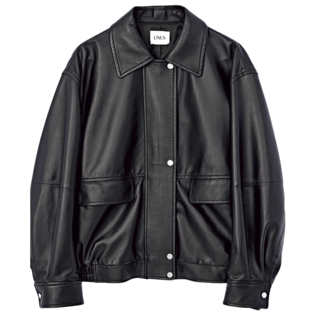 「マニッシュなディテールが特徴のレザーブルゾン。柔らかなラムレザーを使用しているので、着るほどにからだになじみ、トレンドと関係なく、長く愛用していただけると思います」UNUS PR・水谷優芽さん