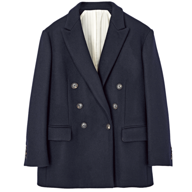 「ダブルブレストのオーセンティックな佇まいに惚れ惚れ♡ ウールメルトンを採用したこちらは、程よい膨らみとハリ感を持ちながらも滑らかな肌触り。着心地も抜群なんです」BACCA PR・金竹麻姫さん