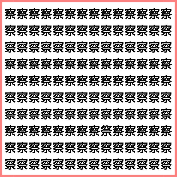 たくさんの「察」の中に、1文字だけ違う漢字が混ざっています。