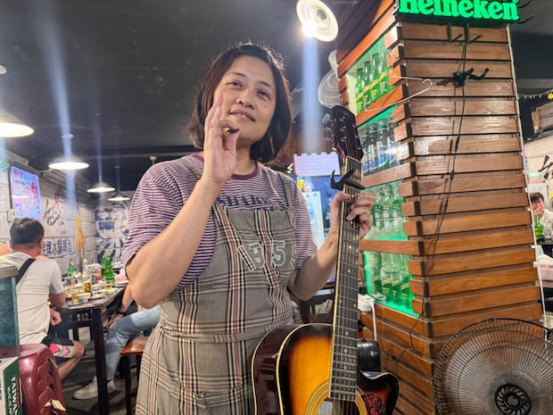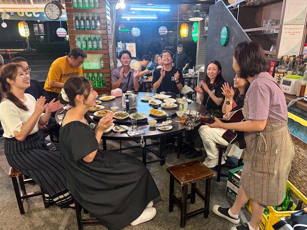 お店の壁にかかっていたギターを手に取り、演奏し始めたのは夏川りみさんの「涙そうそう」。